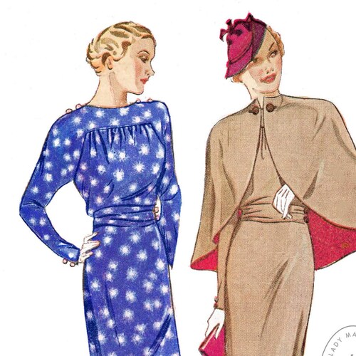 Vintage Sewing Pattern 1930s Dress Cape Reproduction Kimono Etsy